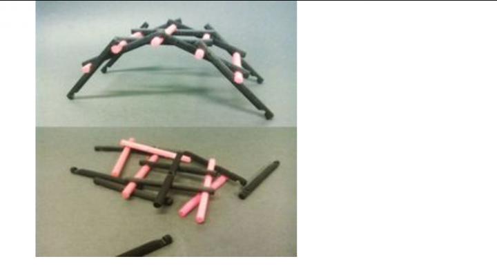 Byg en bro, helt uden besnøringer! Det er lidt svært, men en god udfordring for de ældste spejdere. Følg instruktionerne fra billedet, og få det til at stå helt af sig selv.