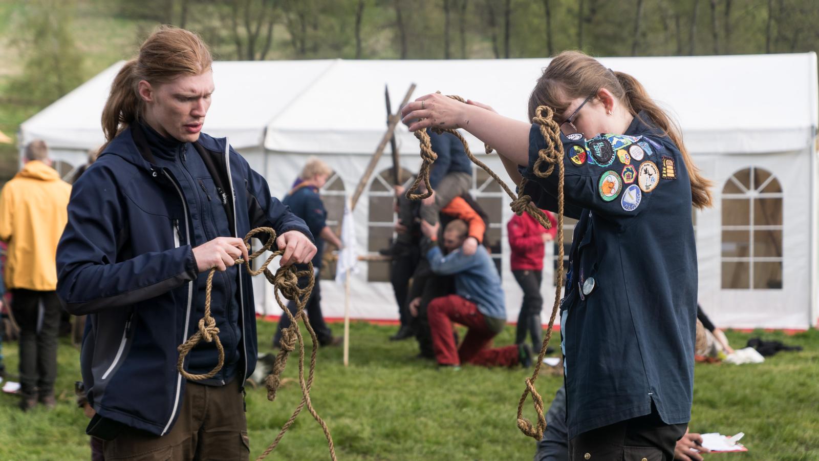 Legen kan gøres sværere ved at lade spejderne binde knobene med lukkede øjne eller på ryggen.