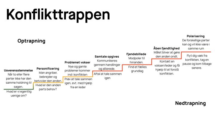 Konflikttrappen er et visuelt værktøj, man bruger til at forstå konflikter og derved nedtrappe dem.