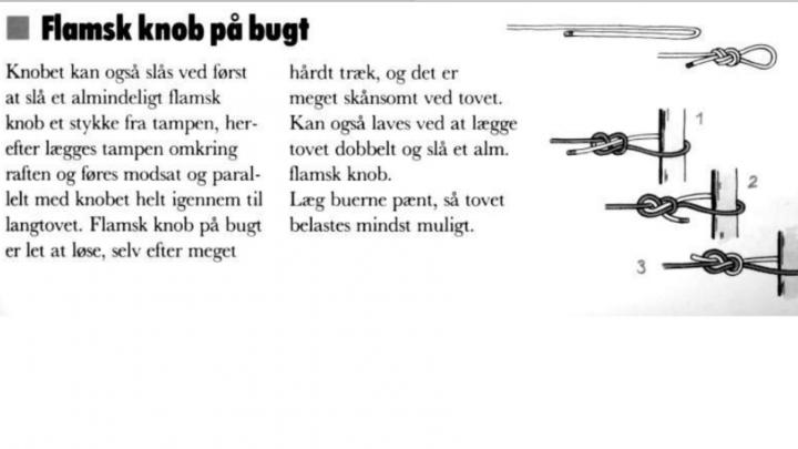 Den anden ende sikres med et 3-2-1 anker (se billede), og som opstramning benytter I en spansk tvinde (se billede).