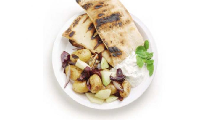 Grillede fladbrød med grøntsager og melon Fladbrød kan være et alternativ til snobrød. Her med en blanding af grøntsager og melon, kryderet med spidskommen og en yoghurtmyntedressing til Varighed: 120+ minutter Målgruppe: Mini Junior Trop Senior Type: Madlavning