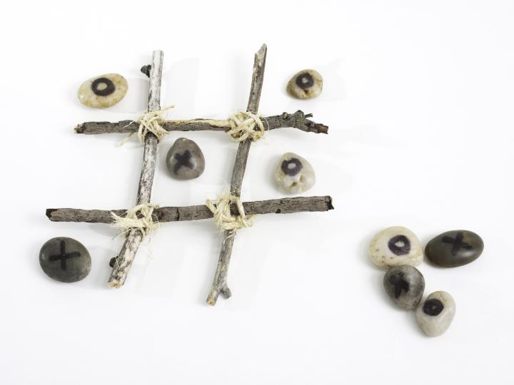 Strand - Spil kryds og bolle med naturmaterialer Delfinerne, Egå, har lavet aktivitetskasser til aktiviteter ved stranden, søen og åen. Mikro Mini Junior 30-60 minutter