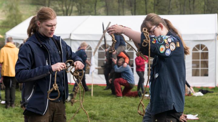 Foto Morten Bjerrum Larsen Knobstafet Leg med fokus på at træne et eller flere kendte knob under en sjov konkurrence med mulighed for forskellige sværhedsgrader afhængigt af gren og niveau. Denne leg hjælper spejderne med at lære og træne nye knobfærdigheder. Legen er en sjov og aktiv måde at træne forskellige knob i en konkurrence blandt patruljerne. Varighed: <15 minutter Målgruppe: Mikro Mini Type: Leg Pioner og tovværk