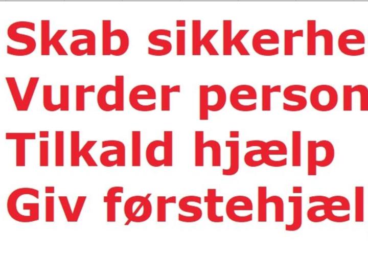 Førstehjælpens 4 hovedpunkter Få styr på hovedpunkterne og hvilke opgaver der hører til hvilket hovedpunkt. Junior Trop Senior 15-30 minutter