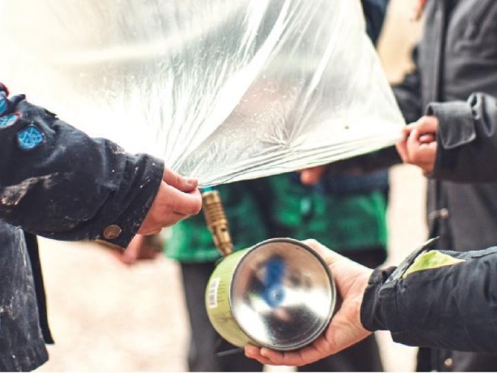 Varm luft er lettere end kold luft, og det er derfor, at varme forsvinder opad og efterlader jeres fødder kolde, når I går rundt på hyttens gulve. Varm luft er så meget lettere end kold, at varm luft kan bruges til at løfte ting med, f.eks. i form af en luftballon. I denne aktivitet skal I have det sjovt med at bygge jeres egne velflyvende luftballoner.