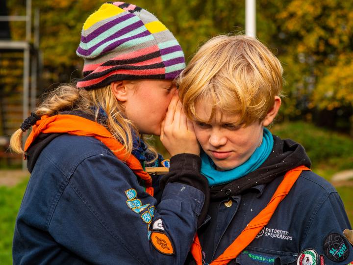 Hviskeleg I denne leg skal spejderne hviske et udsagn videre til hinanden i en rundkreds. Legen er også god til at få alle ind i fællesskabet, da den ikke kræver nogen viden eller færdighed men i stedet, at alle blot deltager aktivt og er en del af rundkredsen. Mikro Mini Junior Trop <15 minutter