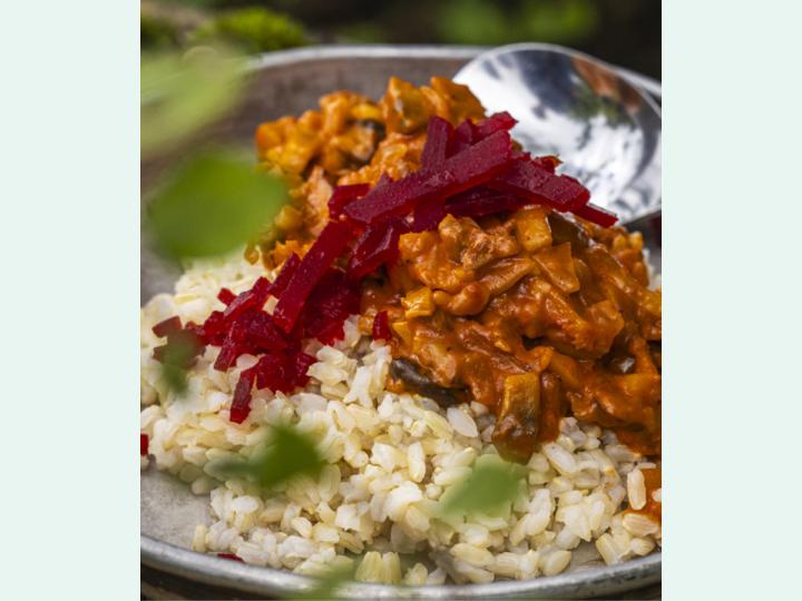 Svampegryde med ris Aftensmadsopskrift fra kogebogen Ild, mad og fællesskab. Opskriften er lavet til 10 personer og egnet til vintermånederne. Familiespejder Mikro Mini Junior Trop Senior 120+ minutter