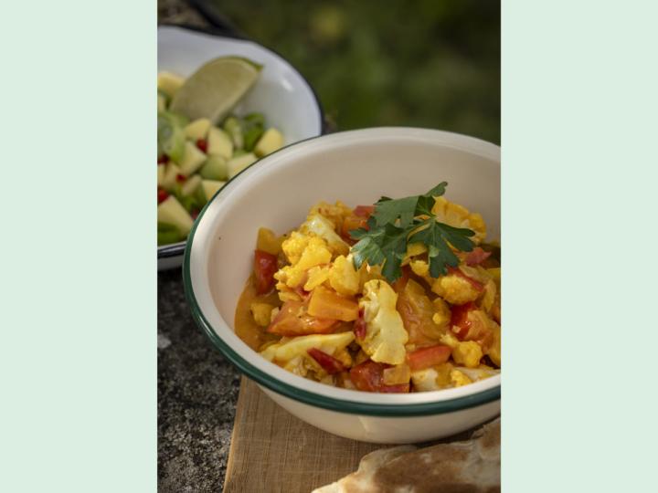 Tikka masala med blomkål og mangosalat Aftensmadsopskrift fra kogebogen Ild, mad og fællesskab. Opskriften er lavet til 10 personer og egnet til forårsmånederne. Familiespejder Mikro Mini Junior Trop Senior 120+ minutter