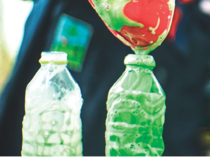 Når du spiser noget, omdanner kroppen det til energi. I den proces bliver der samtidig produceret en gas, der hedder brintoverilte. Kroppen kan omdanne gassen til ilt og vand. Hvis vi blander brintoverilte med gær, sker det samme, og med en smule opvaskemiddel, kan vi danne en skumsøjle. Prøv jer frem, og se hvilken blanding der virker bedst!