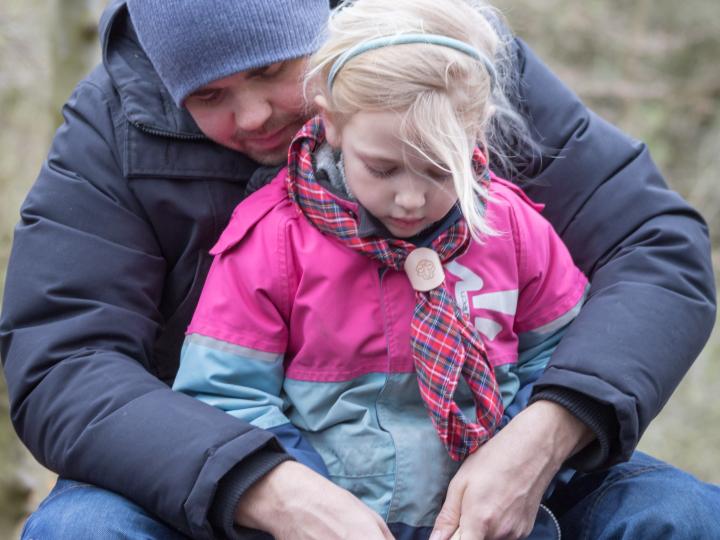 Kniv: Snitte små træmænd Spejderne snitter små træmænd i træ. Aktiviteten er en del af Kniv-bål-knob-mærket under familiespejdmærkerne. Familiespejder 90-120 minutter