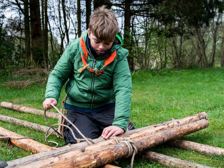 Knob/besnøringer: Andre opgaver Spejderne fortsætter deres læring indenfor knob og besnøringer med rafter. Aktiviteten er en del af kniv-bål-knob-mærket. Familiespejder 90-120 minutter